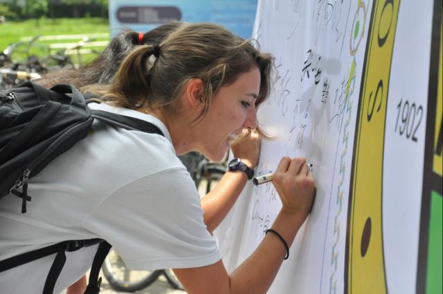 公司团委06A132团支部在开展本次主题团日活动前,经过了精心的准备和仔细的调研,发现了在本次校庆前,海内外员工以及全校同学对个性校徽非常感兴趣,纷纷在校庆前把自己的微信头像改成个性校徽,因此决定本次团日活动以围绕“我和校徽合个影”为核心内容进行开展。活动当天,把母校的校徽印制在海报上,并且邀请全校同学与校徽合影以及在海报上签下自己的姓名,并且给参与活动的同学发放自制的校庆书签。随着上午员工下课高峰的到来,过往的许多同学纷纷被我们创新的活动形式所吸引,积极参与到我们的活动中来,非常愉快的在海报上留下了自己的姓名,并且和海报上的校徽合影留念,我们的照相师们也纷纷用手中的快门,为同学们记录下这一个个珍贵而又美好的瞬间,不少海外职工身为东大学子,也纷纷参与进来,充分体现了东大国际化的魅力!本次现场活动虽然只进行了短短一个多小时时间,但是受到了大量同学的积极参与,有超过200名全校同学在校徽旁留下了自己的身影。