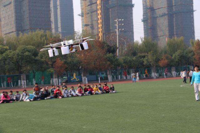 本次志愿服务活动充分利用清水亭小学孩子们科学课的时间,以打造“小小科学家”为核心,结合志愿者们的专业特长,带去了许多孩子们感兴趣的电子科技创新作品,这些作品均由志愿者们亲手制作,其中有:张翌晨同学的电子音响,葛政同学的旋转LED屏,以及杨阔同学的魔法球……这些新颖有趣的科技创新作品,极大的吸引了孩子们的兴趣,深受孩子们欢迎,特别是章坚同学和杨阔同学在操场上向小朋友们展示了自己制作的四轴飞行器,当飞行器在天空中以不同姿态飞行时,获得了小朋友们的阵阵惊呼。志愿者们也非常耐心,不仅向孩子们充分展现了这些作品的演示功能,给孩子们带去了绚丽的视觉效果,而且,还给孩子们仔细讲解了这些科技创新作品的基本原理,并且协助小朋友们一起去操作这些作品。