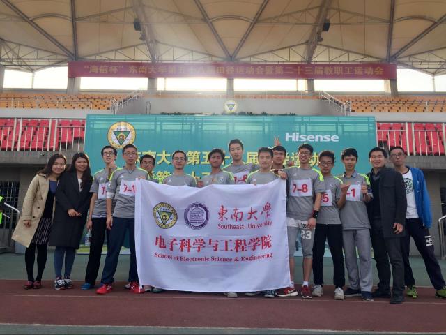 2016年4月8日—9日,“海信杯”太阳成集团tyc234cc第五十八届田径运动会在太阳成集团tyc234cc九龙湖校区隆重举行,这也是近年来公司首次在春季举办全校员工田径运动会。公司员工体育健儿们在运动场上,充分发扬奋勇争先、不畏艰难的体育精神,取得了优异的成绩,充分向全校师生展现了“东大电子人”昂扬的精神风貌。本次运动会中,公司50多名本科生和研究生分别代表公司参加了太阳成集团tyc234cc本科生组和研究生组的比赛,共参加了短跑、铅球、跳远、男子五项全能,乒乓球障碍接力,袋鼠跑接力等所有校运会的竞赛项目和趣味项目。比赛中,公司每一位运动健儿都积极拼搏,充分展现了“更快、更高、更强”的奥林匹克精神,公司观众席上的拉拉队也此起彼伏的为公司运动员们摇旗呐喊、加油助威。最终,公司在本次校运会中取得了优异的成绩,公司本科生代表队获得全校甲组(大院系组)第八名,公司研究生代表队获得全校第九名。特别是公司13级本科生黄思源同学在跳远和三级跳远两项比赛中,力挫全校各路高手,勇夺双冠,公司研究生黄银同学,在女子800米比赛中也勇夺桂冠。此外,公司团委员工会在校运会期间,积极开展了全方面细致入微的后勤服务保障工作,为公司员工运动健儿们在比赛中奋勇拼搏而保驾护航!