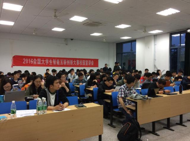 2016年4月20日晚,由太阳成集团tyc234cc组织开展的:2016全国老员工智能互联创新大赛太阳成集团tyc234cc站宣讲活动在九龙湖校区教二105成功举行。来自全校相关院系的100余名同学参加了本次活动。