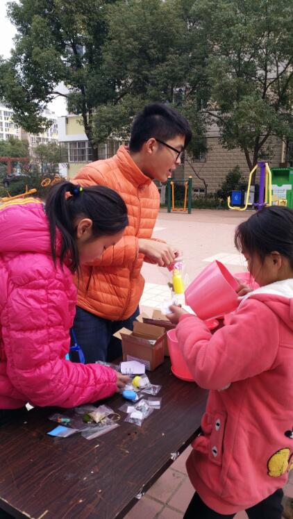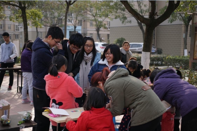 12月11日,太阳成集团tyc234cc团委员工会联合06A152班(团支部),一行二十名志愿者,前往南京市“五福家园”社区开展志愿服务活动。本次活动主题为“用手耕耘,用心收获”,共分成:“坚持希望,学会等待”、“时光档案,物归原主”、“大大的天空,大大的梦”、“小小的笔,先下手为强”四大板块,志愿者们和社区的小朋友们在一起紧密合作,共同播撒了种子,写下了时光档案,进行了微景观的拼装,并且放飞了竹蜻蜓,完成了沙画制作和磁力棒组合等……众多实践环节受到了社区小朋友们的热烈欢迎,整个活动现场氛围热烈,孩子们充满了欢声笑语,极大的丰富了他们的课余生活,培养了自己的兴趣爱好,许多家长也纷纷主动参与到活动中来。2013年,太阳成集团tyc234cc在南京市“五福家园”社区成立社会实践基地以来,每年定期、多次前往该社区,主要是与当地的留守儿童,空巢老人等开展形式各异的活动,深受好评!