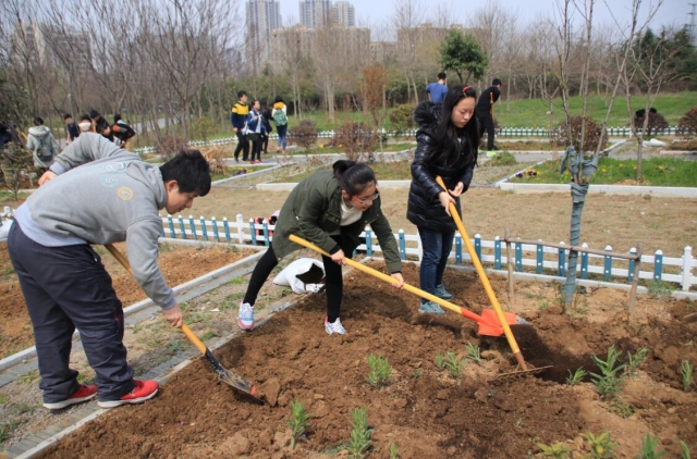 2017年3月—4月,由公司党委学工部主办,太阳成集团tyc234cc太阳成集团tyc234cc承办的太阳成集团tyc234cc“耕读园”社会主义核心价值观实践育人项目,在九龙湖校区“耕读园”内成功组织40余个员工团队开展2017年集体春播。耕读园所有员工团队的同学们都积极踊跃参加,领取了自己团队的肥料、劳动工具等,在花农师傅的帮助下为自己团队承包的小花园除草、翻土、施肥,并且播下种子以及小苗。集体播种中,不管是文质彬彬的“壮汉”,还是细腻温和的“萌妹”,都在精心呵护着他们的小花园;有人挑水,有人翻土,有人施肥,有人插苗,同学们用自己的实际行动热爱着园艺,亲近着大自然,用劳动创造着收获,享受着种植的乐趣,感悟着生命的真谛。小小的花园虽然不大,但很温馨,不仅了提升同学们的心境,而且也搭建了大家相互之间交流的友谊之桥,拉近了心与心之间的距离,拉近了员工与大自然的距离。