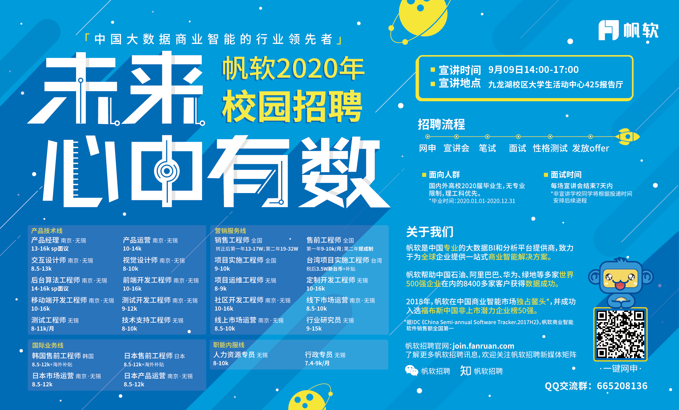 想要获取更多信息可以加入我们的QQ群:帆软20届校招-苏皖答疑: 665208136