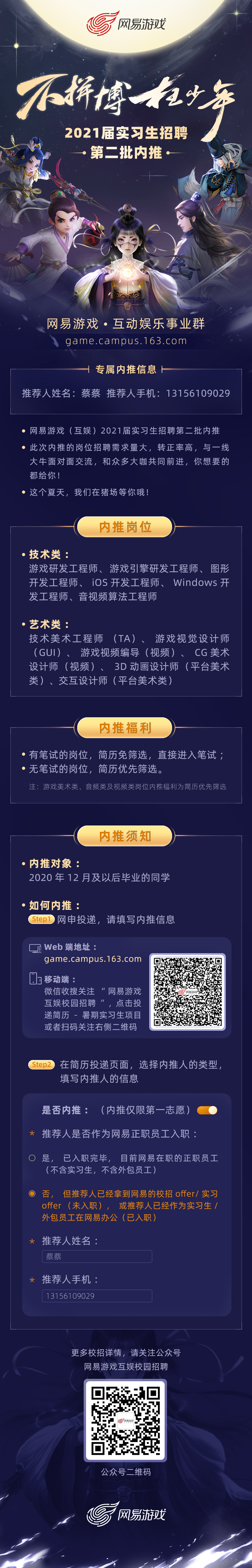 号外!号外!网易游戏(互娱)2021届实习生招聘第二批内推开始啦!