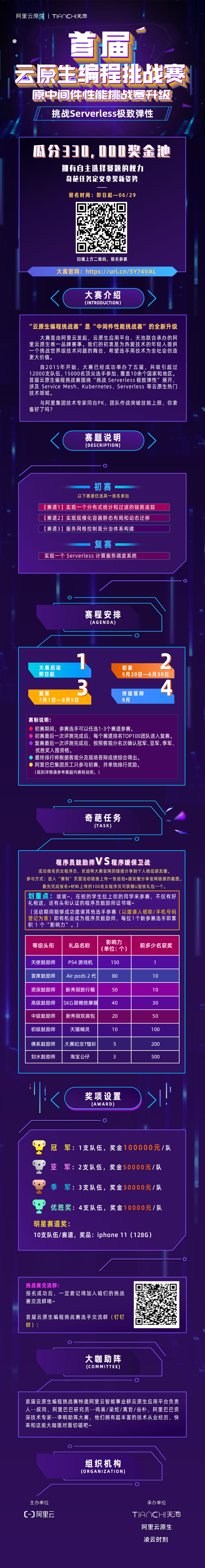 本届大赛主题“挑战Serverless极致弹性”。链路追踪、容器服务、服务网格三大主题赛道任选,初赛即享赛道明星奖励,