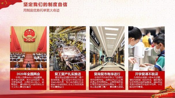 新冠肺炎疫情以一种特殊方式,让我们直观感受中国特色社会主义国家制度和国家治理体系的显著优势,深刻认识中国共产党驾驭复杂局面、应对风险挑战的强大能力。坚持党的集中统一领导、坚持全国一盘棋、坚持以人民为中心的发展思想……充分发挥这些显著优势,我们不仅能战胜眼前的疫情挑战,也将始终拥有攻坚克难的信心底气。