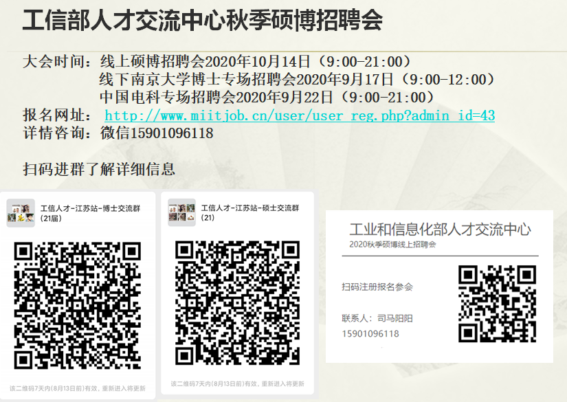 工信部人才中心主办(2020年度)全国秋季硕博线上巡回招聘会——江苏省专场