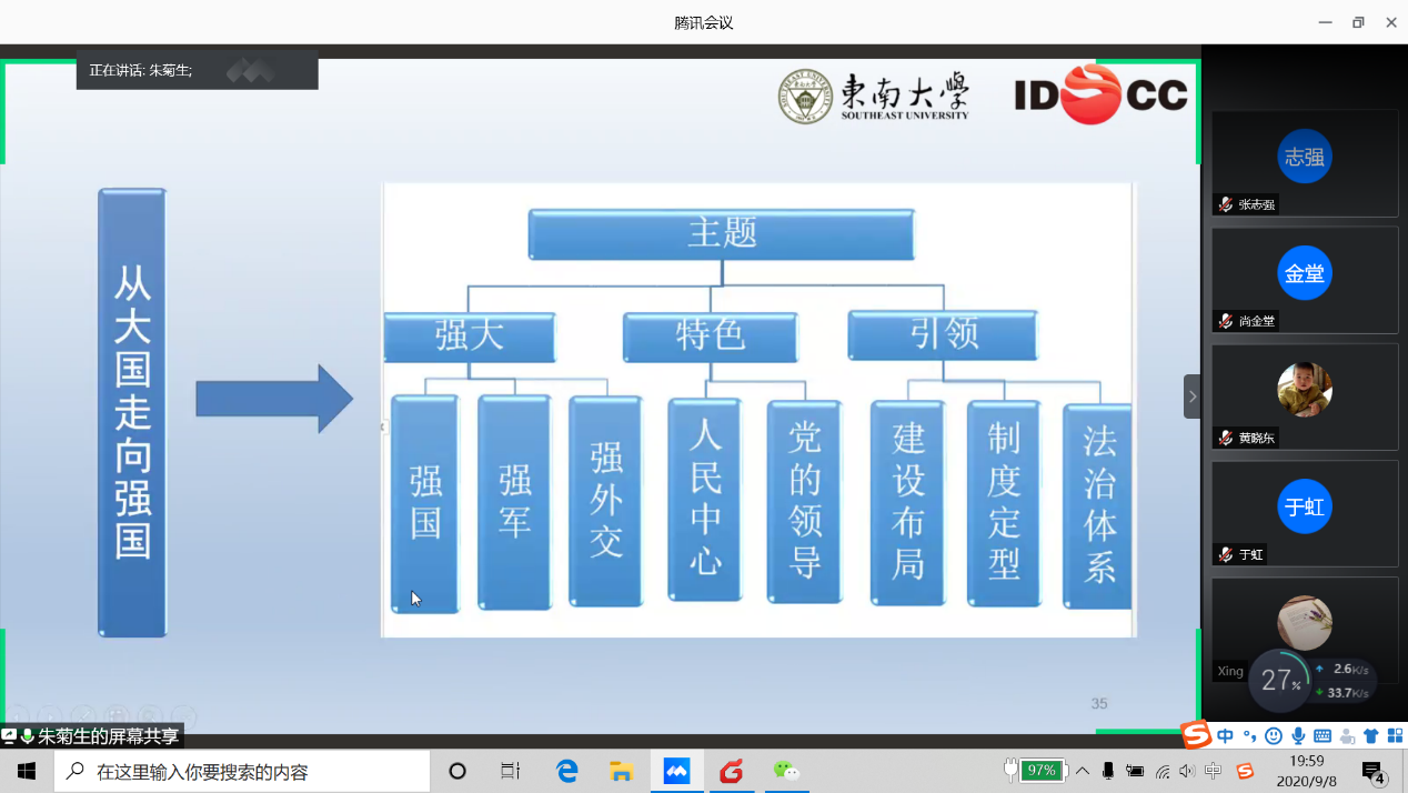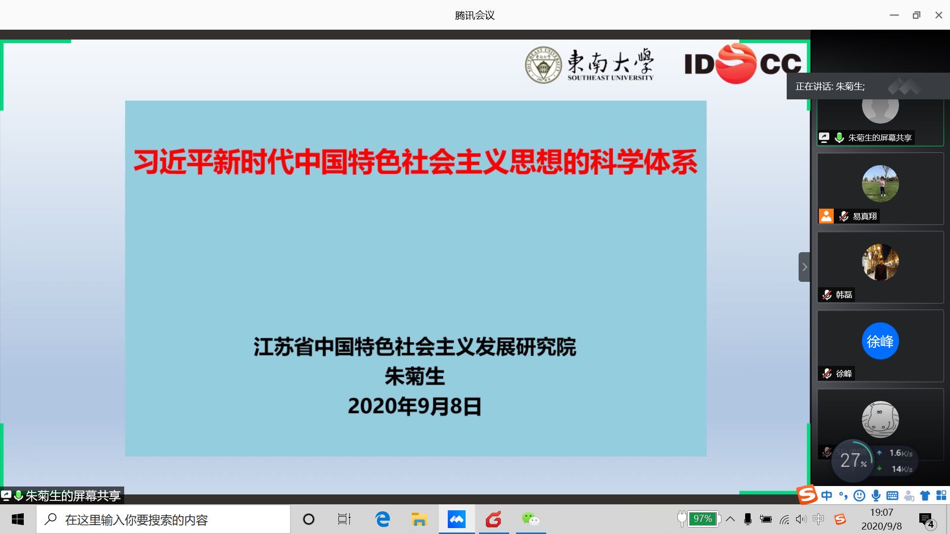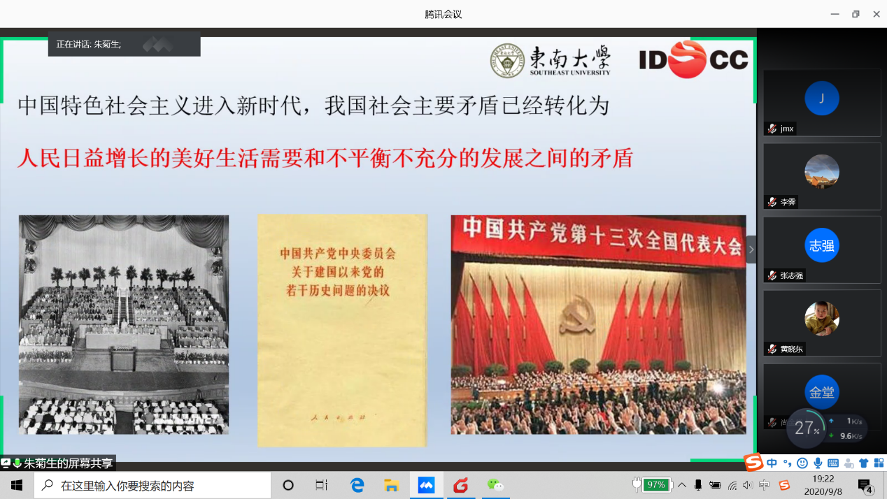 2020年9月8日,太阳成集团tyc234ccMEMS教工党支部邀请江苏省中国特色社会主义发展研究院朱菊生副教授为支部上了一堂题为“习近平新时代中国特色社会主义思想的科学体系”党课。首先,朱教授介绍了“中国特色社会主义”的来源,并强调其多次出现在历次党代会政治报告题目中,重要性不言而喻。接着,他讲述了我国从大国向强国转变大背景下,习近平新时代中国特色社会主义思想,对党和国家事业进行了具体的战略部署和顶层设计,主要包括一个主题、一条主线和三大构成。其中,一个主题是坚持和发展什么样的中国特色社会主义,怎样坚持和发展中国特色社会主义;一条主线是实现从大国走向强国的历史性跨越,实现中华民族伟大复兴“中国梦”;三大构成包括强大、特色和引领。最后,朱教授鼓励支部党员教师能够坚定不移地走中国特色社会主义道路,坚持为党为国培养人才,早日解决电子领域的卡脖子问题。