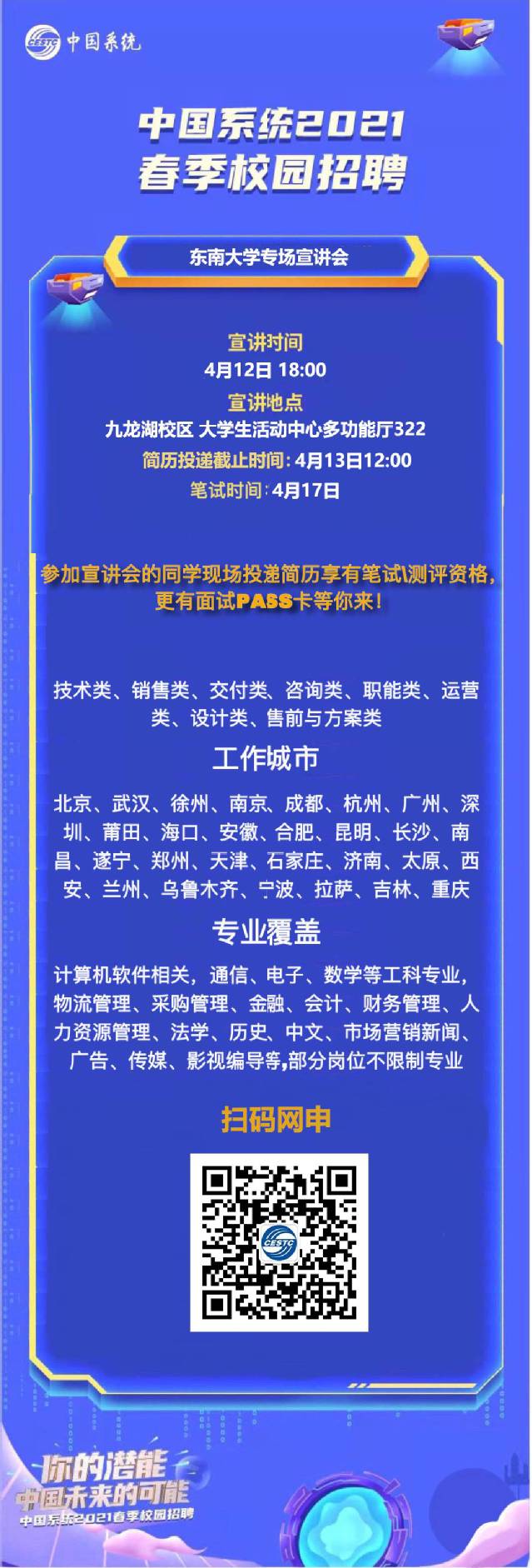 重要通知!央企平台-中国系统 (中国电子旗下数字与信息服务板块核心企业)2021春季校园招聘 太阳成集团tyc234cc站宣讲会!
