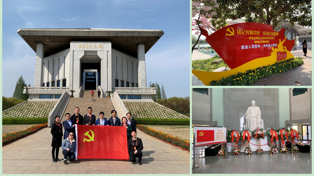 2021年4月9日下午,MEMS教工支部一行10人赴淮安市参观周恩来纪念馆,开展“重温红色历史、学习总理精神”主题教育活动。在讲解员的介绍下,一张张泛黄的照片、一件件宝贵的文物、一段段珍贵的影像,重现了周总理伟大的一生:少年时为中华之崛起而读书,青年时求学问求真理,中年时荜路蓝缕、大智大勇,晚年时鞠躬尽瘁死而后已。大家边听讲解边观看,不时地请教和讨论,为周总理心底无私、天下为公的高尚人格所折服。在纪念堂,支部成员向总理座像三鞠躬,深切缅怀周总理光辉而伟大的一生。之后,支部成员参观了西花厅,办公室和卧室极其简单朴素,总理每天睡眠时间仅3、4个小时,几十年如一日,为共和国的建设与发展呕心沥血。抚今追昔,面对当今百年未有之国际大变局,大家纷纷感慨:要立足高校教学与科研工作,发扬恩来总理精神,不忘初心,牢记使命,为党和人民培养更多的杰出科技人才,为突破卡脖子技术贡献力量。