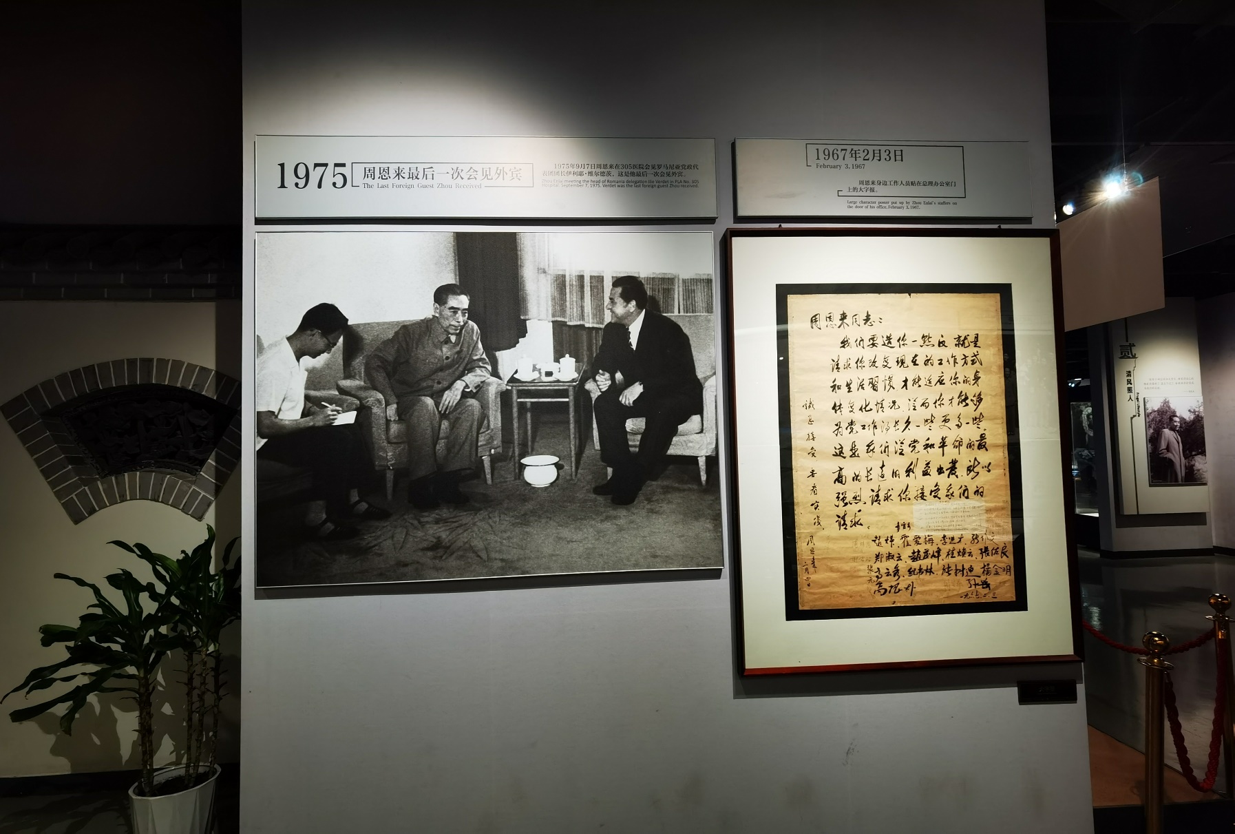 下午,OSCC师生一行参观了周恩来纪念馆。馆中展出了周总理从少年时期开始各个时期的照片和事迹:年少立志“为中华之崛起而读书”、青年时期赴日求学、旅欧入党、后参加黄埔军校谱写黄埔新篇、主政东江、领导上海工人第三次武装起义、南昌起义、参与领导长征、力促团结抗战、协助指挥决战、筹组政府机关、直到建国后主持外交、调整国民经济、参与指挥抗美援朝、力促军、工、科教文卫等各行各业的发展,并在文化大革命时期为国家正常工作的运转呕心沥血,周总理在新中国成立和建设的各个时期发挥了重要的作用,无私而伟大,让人无比敬佩。馆中一组周总理住院期间的治疗与工作情况的统计数据让人震撼,他在1974年6月起住院的1年半时间里,尽管经历了13次手术,他仍然不忘为国操劳,治疗的间隙中还召开会议40次,会见外宾65批,与各级负责人谈话254人次,让人深切体会到了总理的“鞠躬尽瘁、死而后已”。